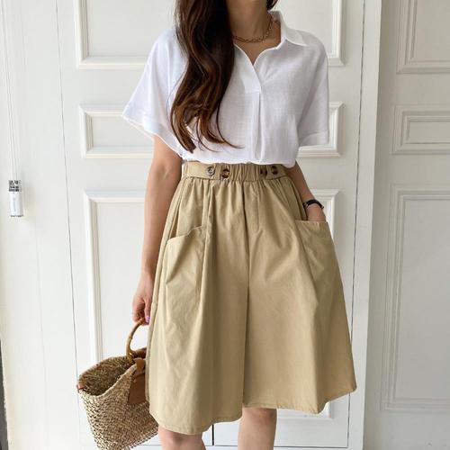 [다잇템]여자 큰주머니 고무줄 하프 단추 데일리 팬츠