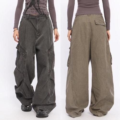 besteffie 여성 캐주얼 팬츠 가을용 넉넉한 핏 면바지 작업복 스타일 큰 주머니 디자인 편안한 바지 K18