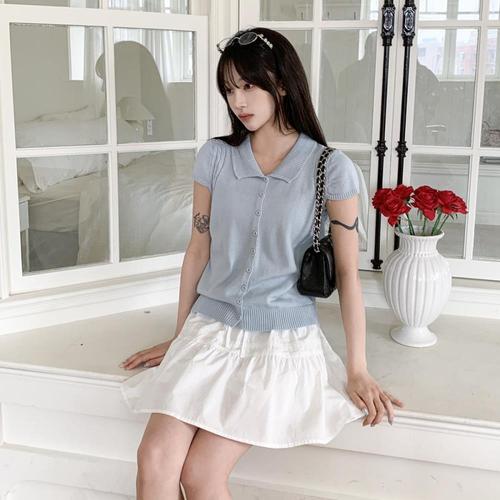 [다잇템]여자 클래식 카라 페미닌 반소매 가디건