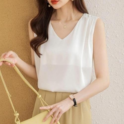 [다잇템][다잇템] 여자 슬리브리스 소프트핏 더블핀턱 클래식 블라우스_23076637_588872
