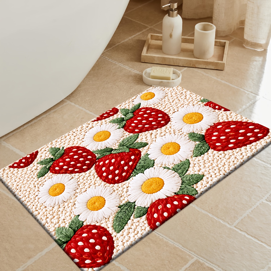 TEMU [제품] [플란넬 + 1cm 두께 스펀지 소재] 재미있는 현관 매트|스트로베리 데이지 패턴 프린트 매트, 침실, 주방, 식당 및 욕실과 같은 다양한 환경에 적합합니다. 미끄럼 방지 기능이 있으며 세탁기 사용 가능