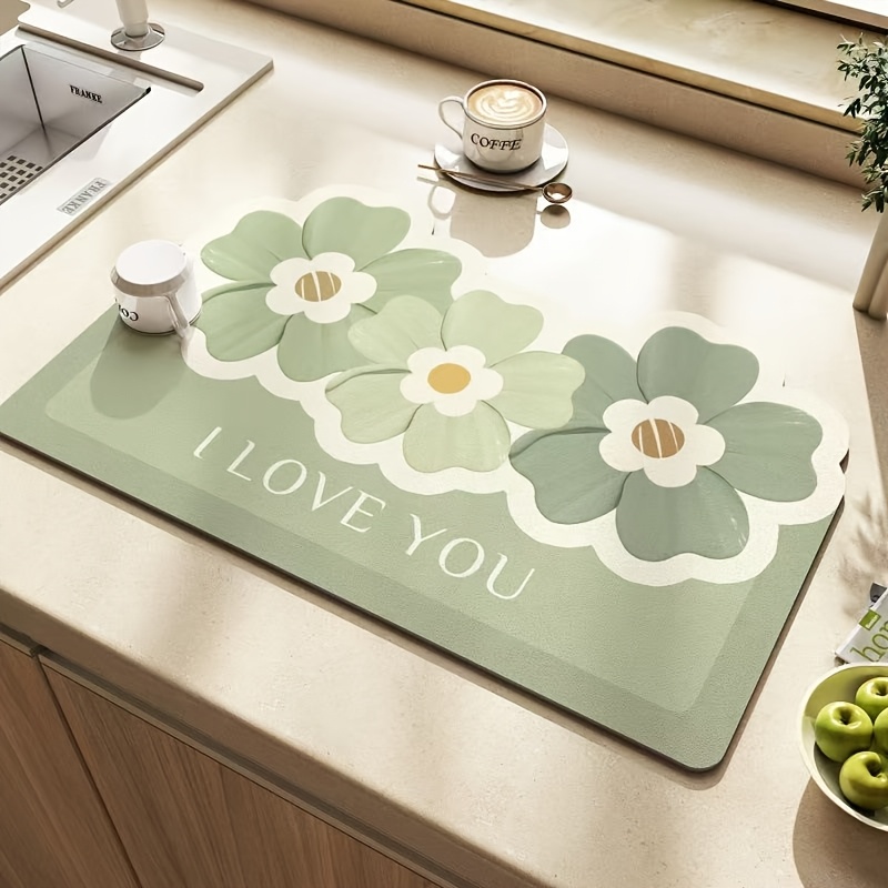 TEMU 부드러운 다이아톰 흙으로 제작된 꽃무늬 패턴이 특징인 식기 건조 매트. 커피 머신용 흡수성 및 내마모성, 식기 미끄럼 방지 기능이 있으며, 코스터로도 사용 가능합니다.