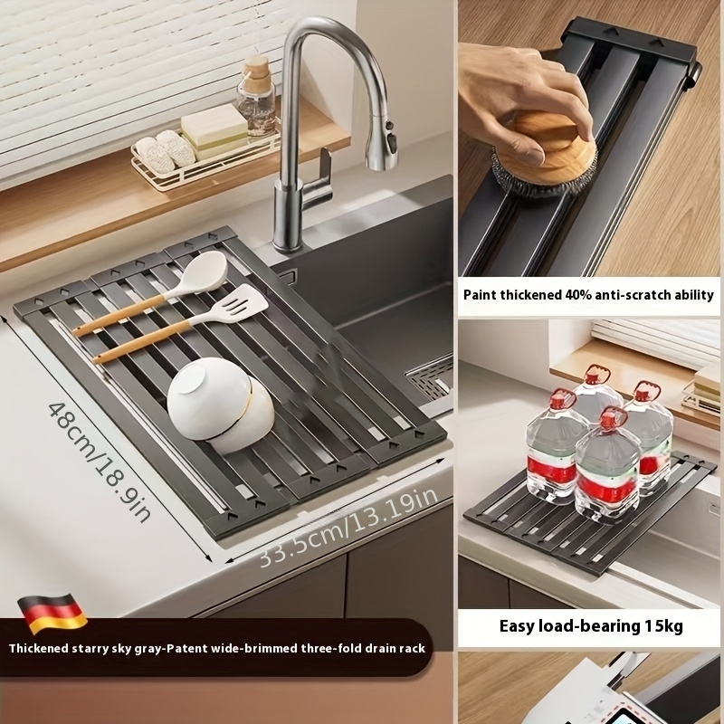 TEMU 1개, 디럭스 스테인리스 스틸 롤업 식기 건조대 - 싱크대 위 공간 절약 디자인, 다기능 식기 건조대, 휴대용 롤링 랙, 싱크 매트, 쉬운 보관, 녹 방지, 내구성 있고 컴팩트한 주방 도구, 건조대|식기건조대