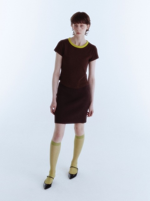 [키네토] 라운드 리본 라인 티셔츠_브라운 라임_우먼