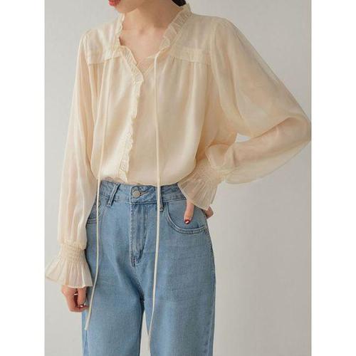 [키첼]루베아 프릴 쉬폰 블라우스