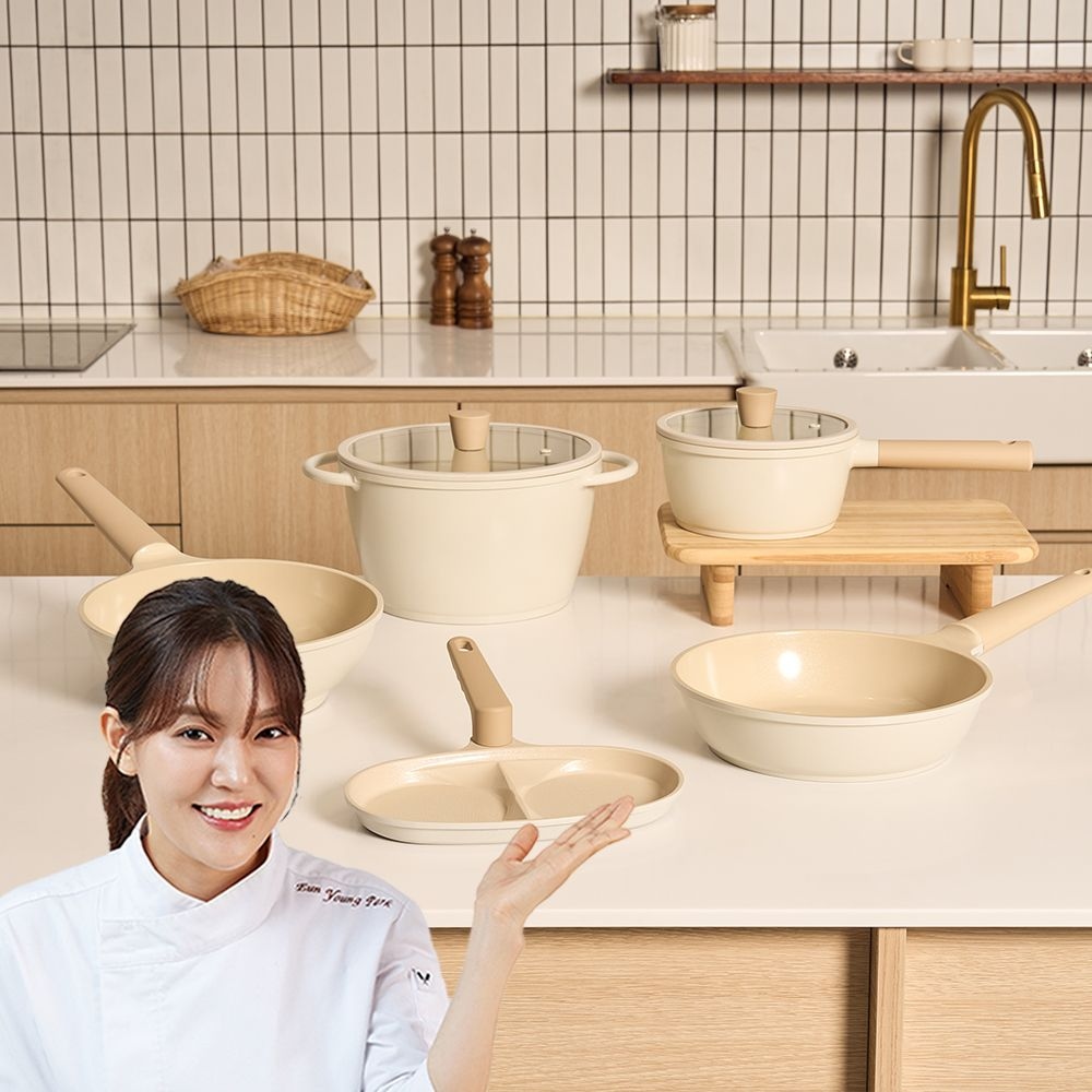 [단3시간,12%쿠폰] 국내생산 세라믹 인덕션겸용 냄비&후라이팬 베이지 5종세트