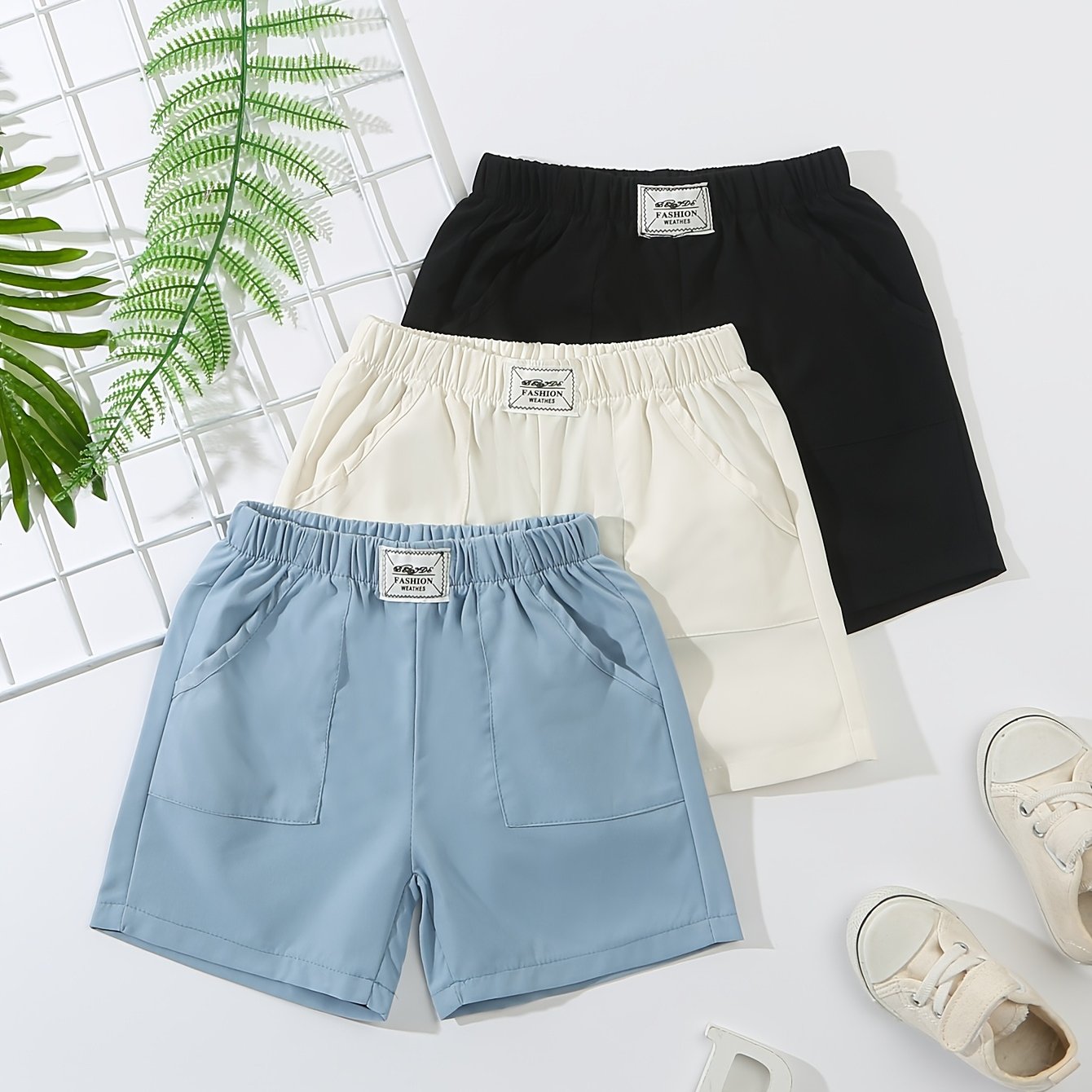 TEMU 3개 세트 어린이용 캐주얼 스포츠 반바지, 포켓 포함, 100% 폴리에스터 비신축성 단색 여름용 소년 및 소녀용, 일상 및 캐주얼 야외 활동, 여름 반바지, 야외 활동에 완벽