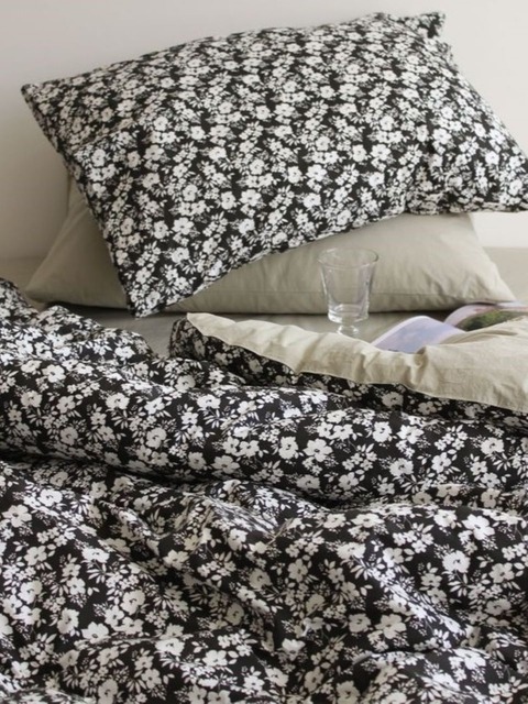 [고그린오브젝트] 가을 겨울 80수 고밀도 바이오 블랙플라워 차렵이불 (슈퍼싱글/퀸/킹)
