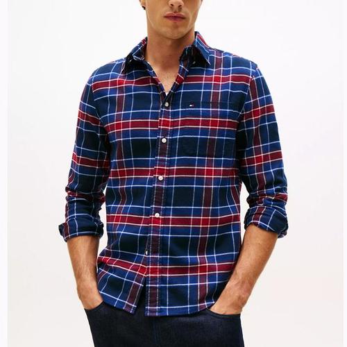 [해외배송] 타미 남자 레귤러핏 플래널 체크 프린트 셔츠 Navy