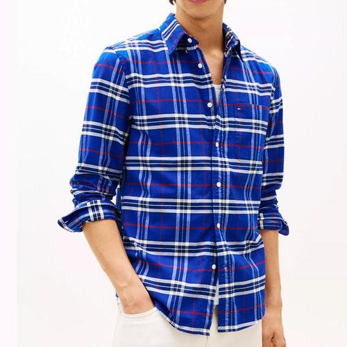 [해외배송] 타미 남자 레귤러핏 체크 브러쉬 옥스포드 셔츠 Blue