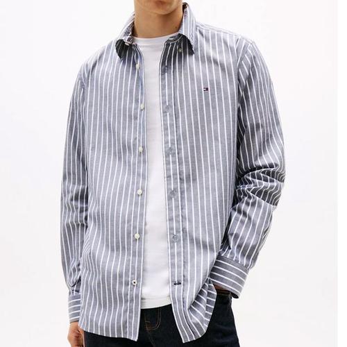 [해외배송] 타미 남성 레귤러핏 스트라이프 긴팔 셔츠 Blue