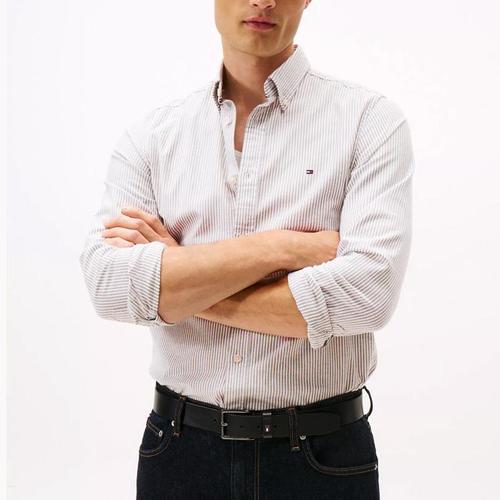 [해외배송] 타미 남성 레귤러핏 스트라이프 긴팔 셔츠 Coffee