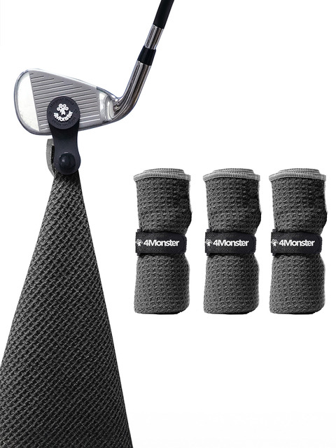 [4몬스터] 골프타올 세트 그레이 (타올 3개+자석클립 1개+카라비너 1개)