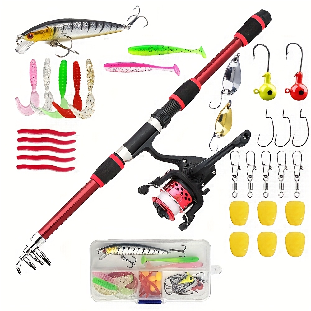 TEMU 1.8M 텔레스코픽 스피닝 낚싯대 및 릴 세트 (5.2:1 기어비, 3BB 릴 포함), 최대 드랙 용량 5Kg, 완벽한 낚시 추가 키트