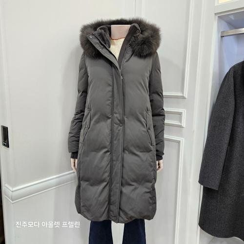 [프렐린]프렐린 여성복 후드 퍼 탈부착 가능한 롱 구스 점퍼 RJJ244060