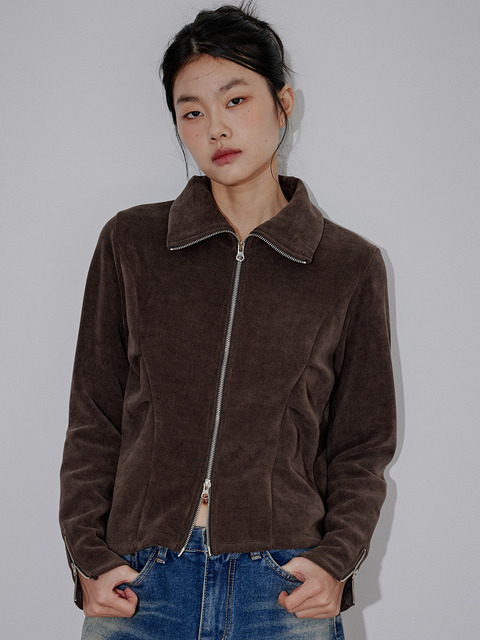 [탑걸] 벨벳 코듀로이 하이넥 투웨이 집업_T521OT828
