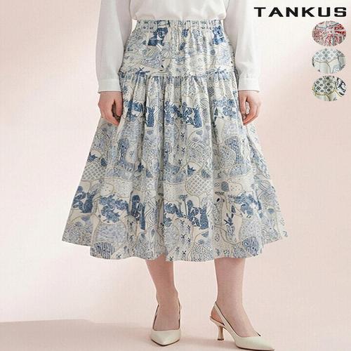 [탱커스]여성 스케치 나염 디테일 밴딩 스커트