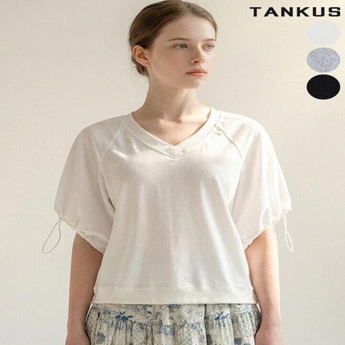 [탱커스]여성 V넥 소매 스트링 루즈핏 반팔 티셔츠