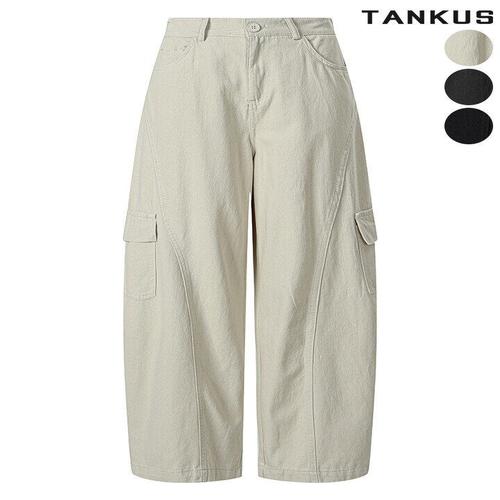 [탱커스]여성 뒷밴딩 카고 포켓 통 와이드 팬츠