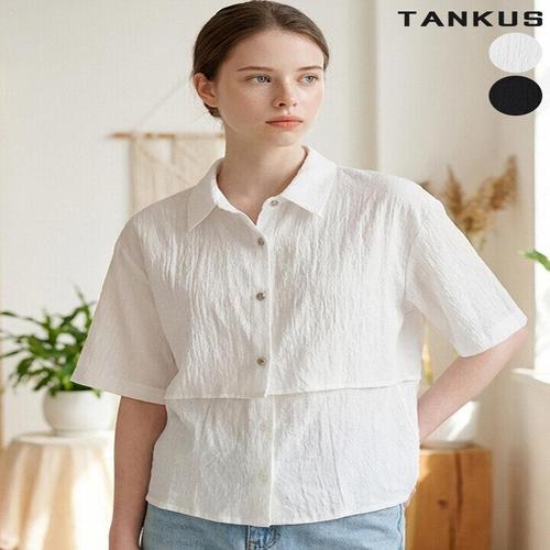 탱커스 여성 카라 허리 셔링 롤업 사파리 셔츠