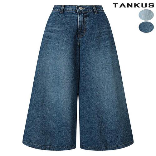 [탱커스]여성 밴딩 A라인 통 와이드 데님 팬츠
