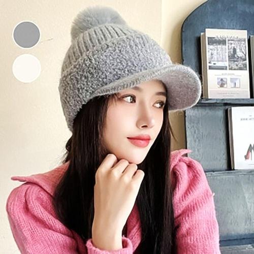 [플릭앤플록]WAC002.밍크 방울 니트 여성 빵모자 털모자 베레모 겨울 방한 모자