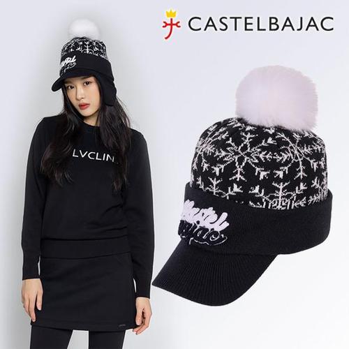 [까스텔바작]겨울 여성골프웨어 자카드 아트웍 니트캡 골프 털방울 니트 귀달이 모자