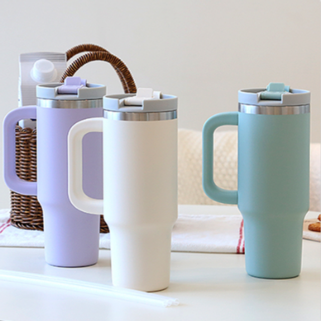 네오플램 대용량 스텐 텀블러 900ml 이중진공 손잡이 빨대