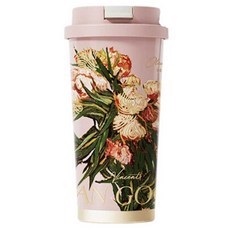 점 반 고흐 플로럴 시리즈 글리터 보온 텀블러 펜던트 스트랩 포함 GE-MET23-B75, 1개, 500ml, 올랜더 핑크
