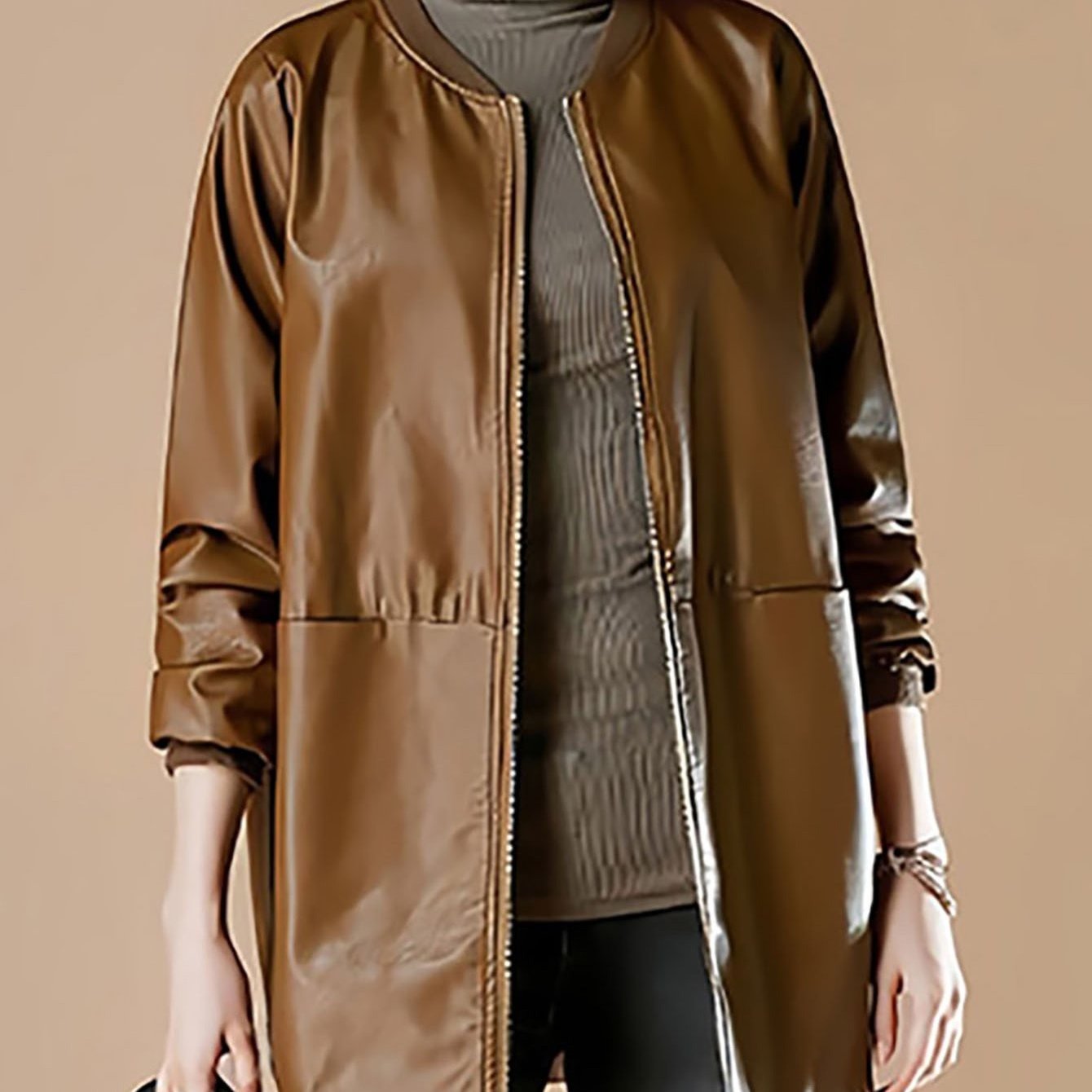 TEMU 여성 봄가을 자켓 루즈핏 하프기장 스타일리쉬하게 매치하기 좋은 소프트 빅포켓 솔리드 디자인 캐주얼 통근 야구복 코트 SLIM GIRL 슬림소녀