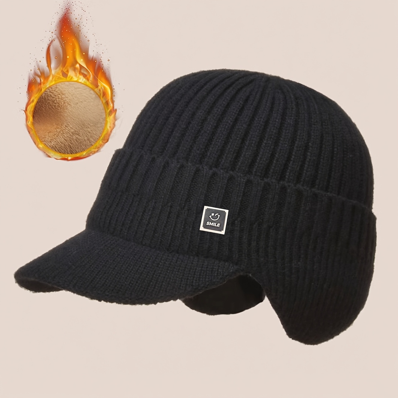 TEMU 남녀공용 겨울 따뜻한 니트 모자, 플리스 안감 & 귀 보호 - 두꺼운 단열 모자, 노인, 중년 (아빠/엄마), 할아버지/할머니용 - 블랙, 아버지의 날 선물, 겨울 모자, 겨울 모자류, 겨울 액세서리, 겨울 의류, 귀 보호 모자, 플리스 모자, 따뜻한 모자, 블랙 모자, 비니