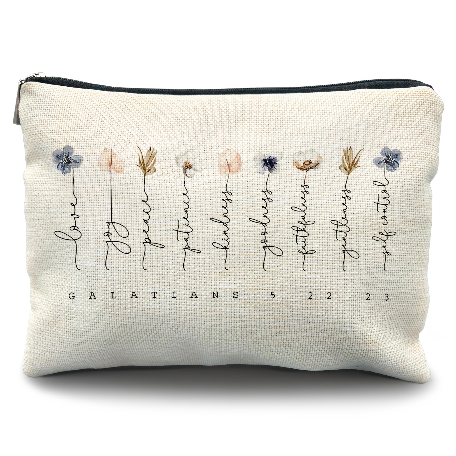 TEMU 기독교 꽃무늬 메이크업백, 갈라디아서 5:22-23, 성령의 열매, 여성과 소녀를 위한 기독교 선물, 기독교 선물용 가방, 성경 구절 선물, 영감을 주는 여성와 소녀를 위한 선물, 성경 구절이 담긴 화장품 파우치