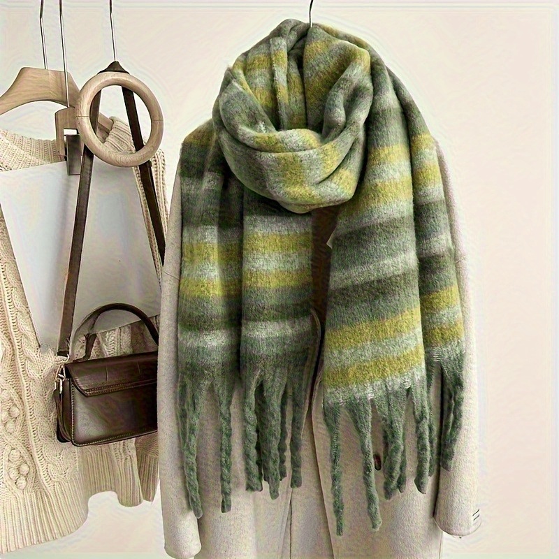 TEMU 1개 여성용 겨울용 따뜻한 방풍 양면 브레이드 태슬 스카프 - 우아한 브러시드 컬러 (//타우프) 브레이드 & , 캐주얼 및 아웃도어 착용용 세탁기 사용 가능 - 날씨에 따른 포근한 넥 랩