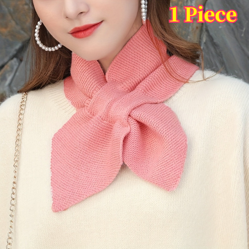 TEMU 1개 - 여성용 솔리드 컬러 스몰 스카프 - 사계절 캐주얼 & 아웃도어용, 두꺼운 크로스 디자인 리본, 피쉬테일 다용도 장식, 삼각형 넥 게이터