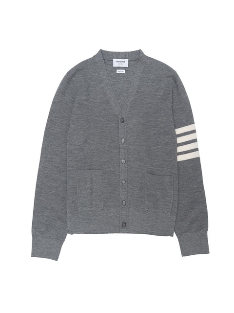 [톰 브라운] 라프리마 톰브라운 파인 메리노 와플 4-바 하이 V넥 카디건 MKC484AY1014-055