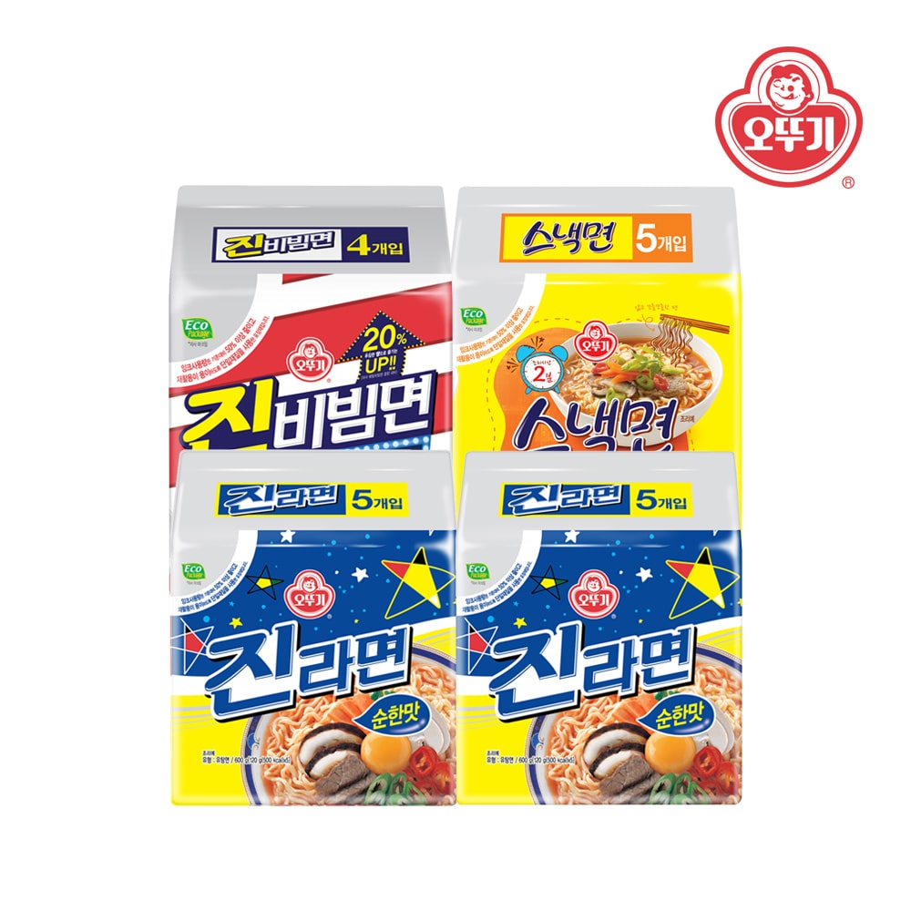 [오뚜기] 진라면 매운맛 5+오동통면 5+스낵면 5+김치라면 5