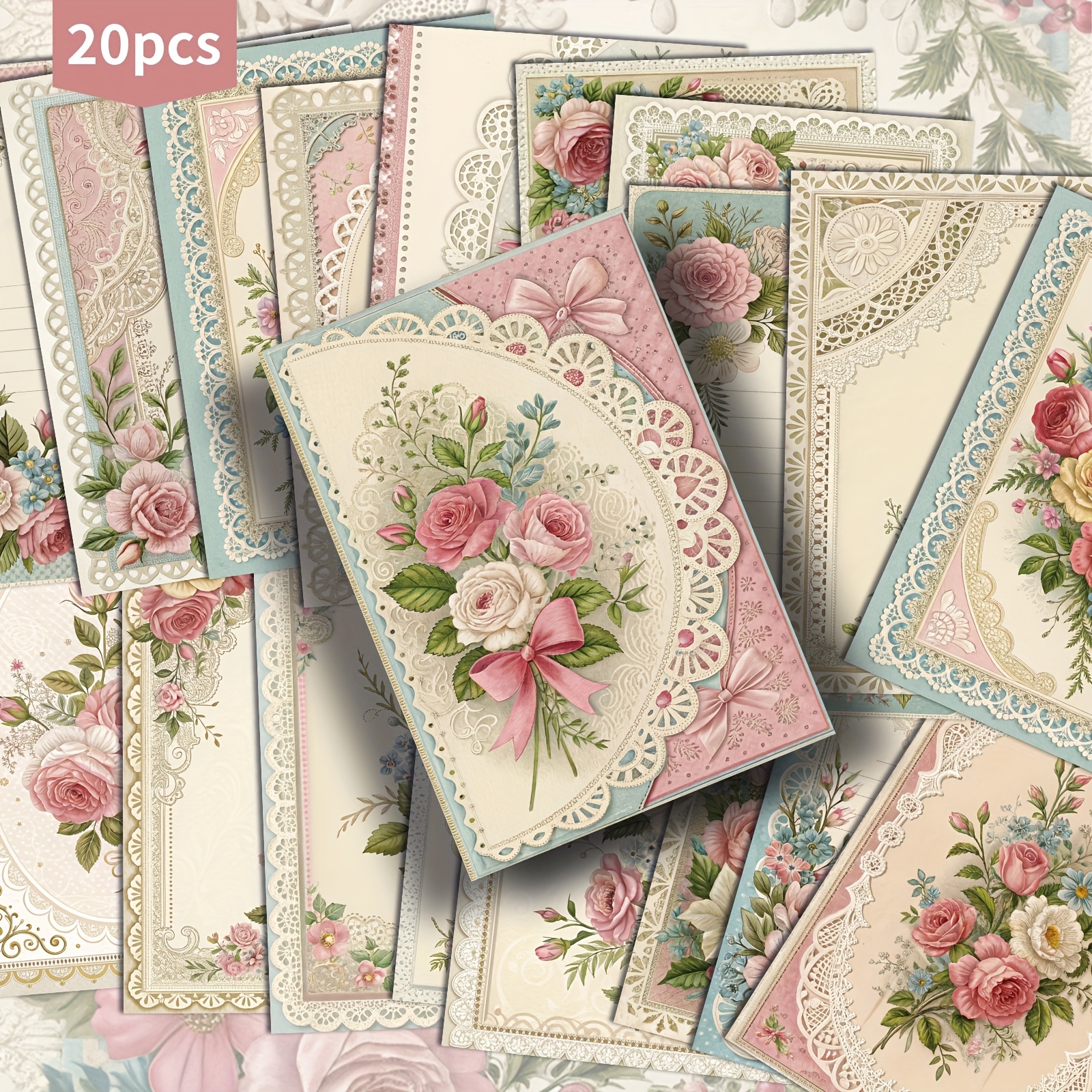 TEMU 20팩 빈티지 플로럴 엽서 - 4x6인치 인어 핀업 일러스트레이션, 레이스 테두리 & 파스텔 컬러, 스크랩북용 수집 카드, 할머니날 선물, 공예 액세서리, 생동감 넘치는 빈티지 포스트카드