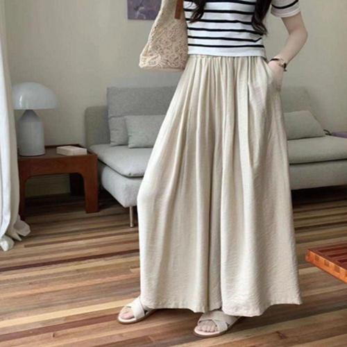 TC2 여성용 심플한 데일리 통큰 와이드 홈웨어 통 바지 WFJ16RI