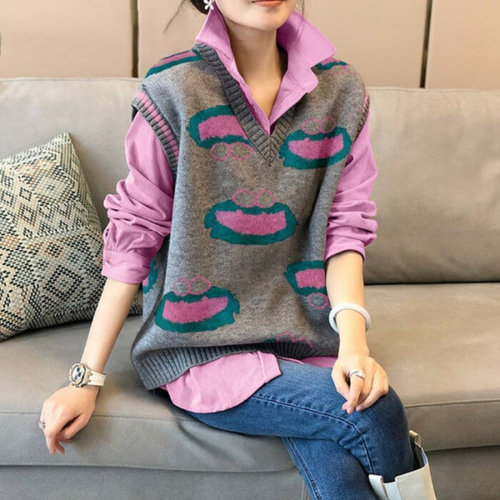 허그허그 / 리노 유니크 셔츠 앤 패턴 니트 베스트 투피스 세트