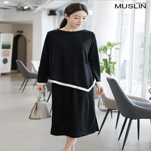 [모슬린]엄마옷 배색티셔츠 스커트 투피스세트 515FGH085 마담/중년여성/빅사이즈/50대/60대