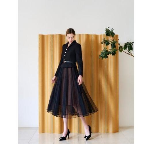 44-88 모던 트위드 자켓 매쉬 플레어 스커트 투피스 세트 빅사이즈 하객 결혼식 모임룩 청담동 연말