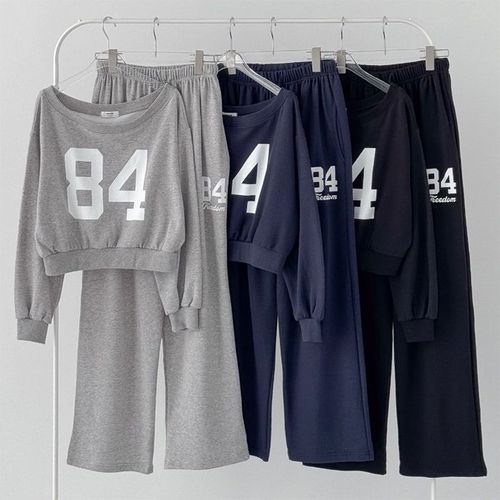옷자락 / 여성 오프숄더 크롭 맨투맨 봄 트레이닝 와이드 바지