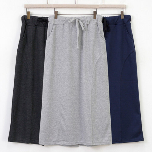 네모엔룩 여성용 쭈리밴딩롱 스트링끈 사이드포켓 트레이닝룩 뒤트임 코튼 롱 스커트 (기모타입추가)