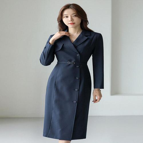 [신상오픈런]여성용 투웨이 퍼프 소매 롱 트렌치코트 핀턱 원피스