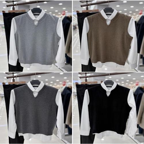 [트루젠]남성 가을겨울 셔츠 레이어드 브이넥 V넥 니트 스웨터 조끼 베스트 4컬러
