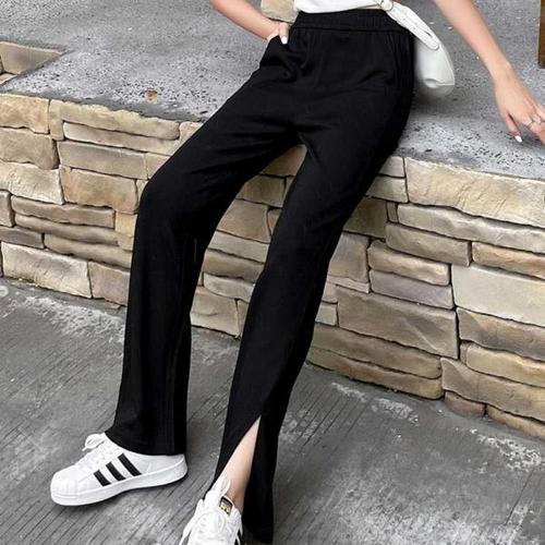 여자바지 앞트임 스판 면 부츠컷 팬츠 여성 나팔 캐주얼 바지