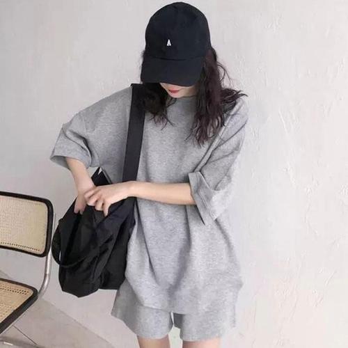 [다잇템_패션]여자 하프팬츠 반소매티 그런지 클래식 세트