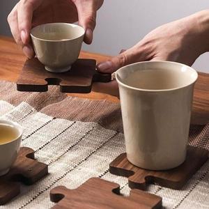 우드 원목 차 티 컵 받침 홀더 퍼즐 F타입 코스터