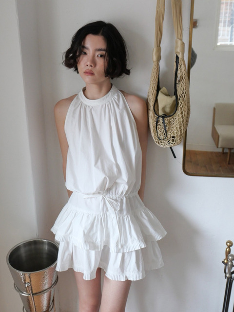 [티엔느] 카라 프릴 홀리넥 미니 원피스_화이트