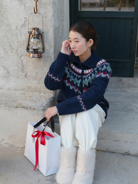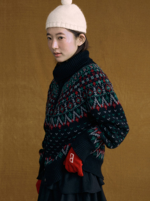 [티엔느] 홀리데이 페어아일 하이넥 가디건